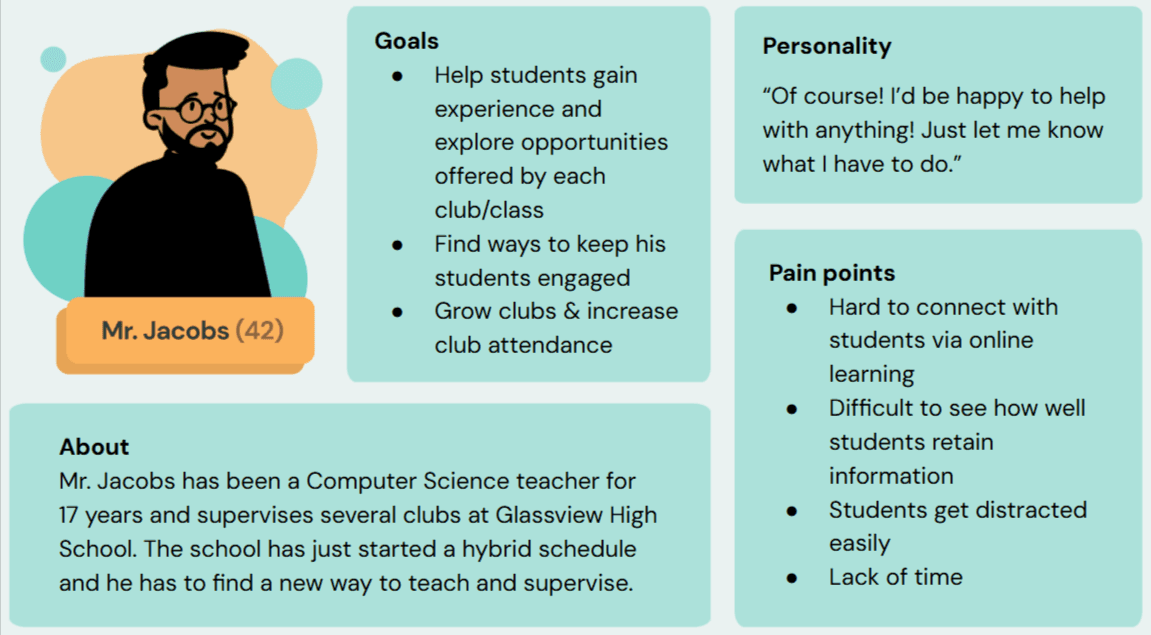 We conducted user research on high school students, IDOT members, and education experts (i.e. teachers).
