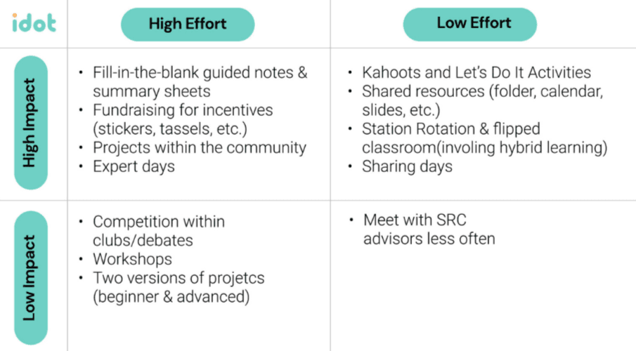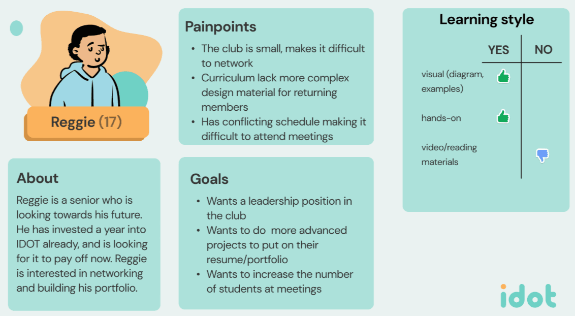 Students wanting to participate in IDOT want real experience, projects, and resources to utilize outside of the classroom. Additionally, the program should appeal to and be rewarding for a variety of skill levels.