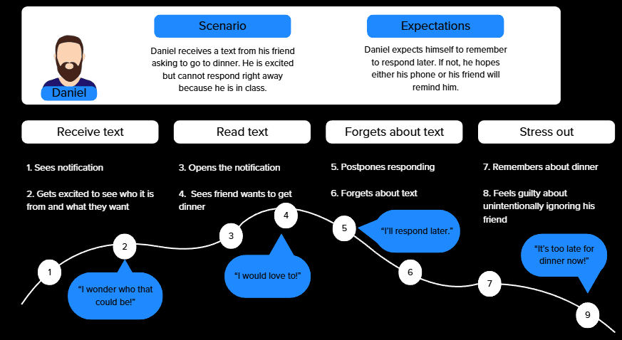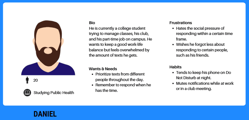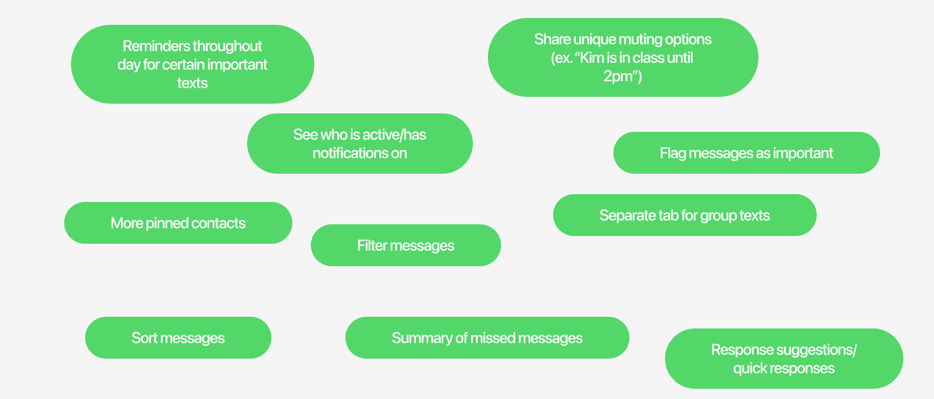 iMessage can feel unorganized and cluttered. It is easy for texts to be ignored throughout the day as a result of its design. We aimed to address feelings of being overwhelmed in iMessage.