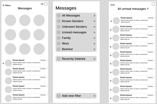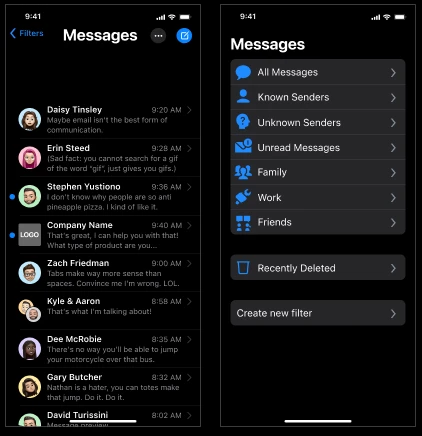 The iMessage filtering system allows users to personally organize their contacts and messages for a less cluttered, overwhelming experience.